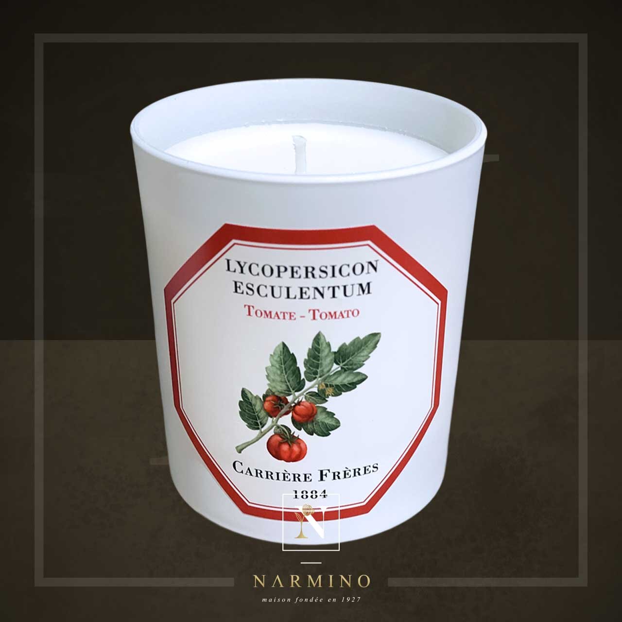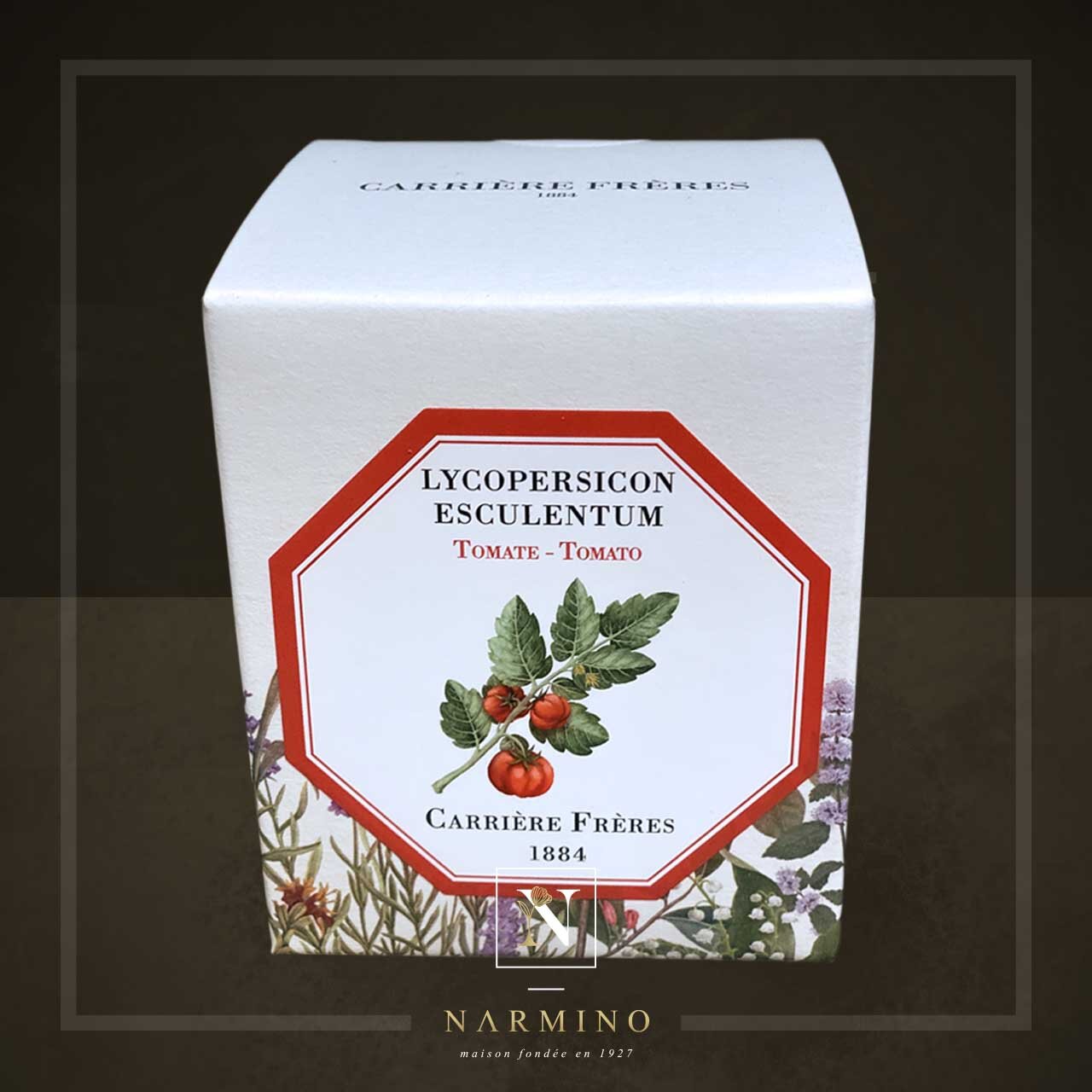 Une bougie parfumée réalisée par la prestigieuse fabrique Carrière Frères. La tomate est une baie issue des plantes de la famille des solanacées originaires d’Amérique du Sud.