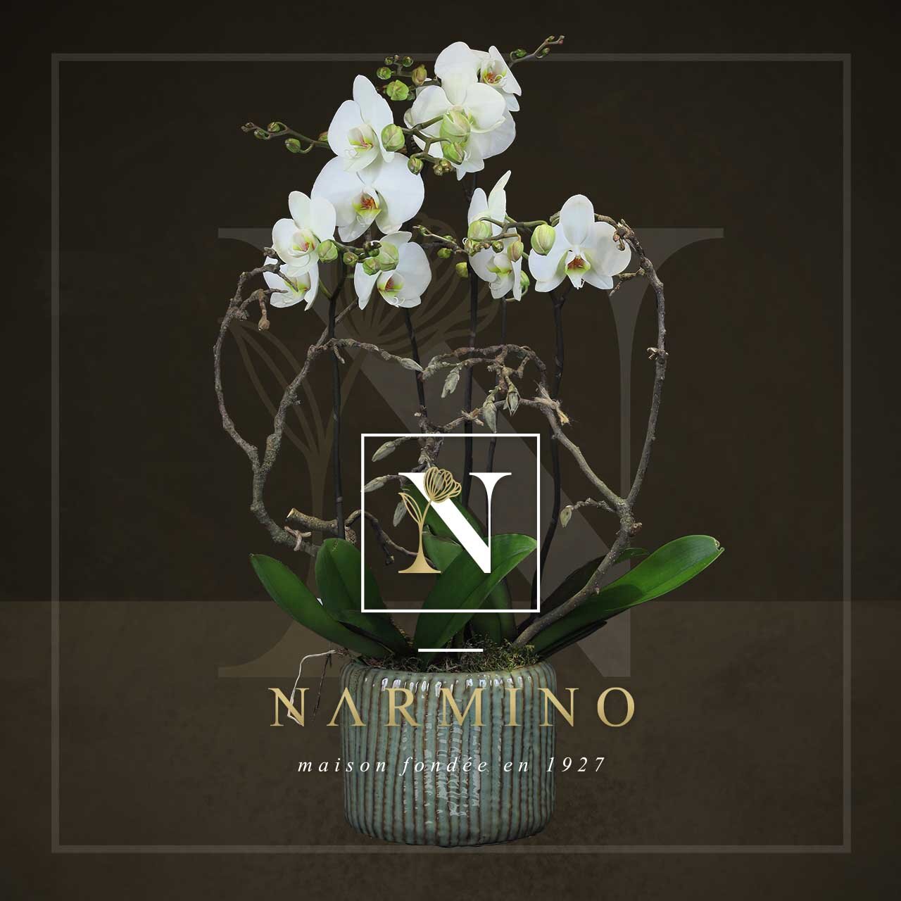 Phalaenopsis 4 branches, plus cache-pot et décoration.