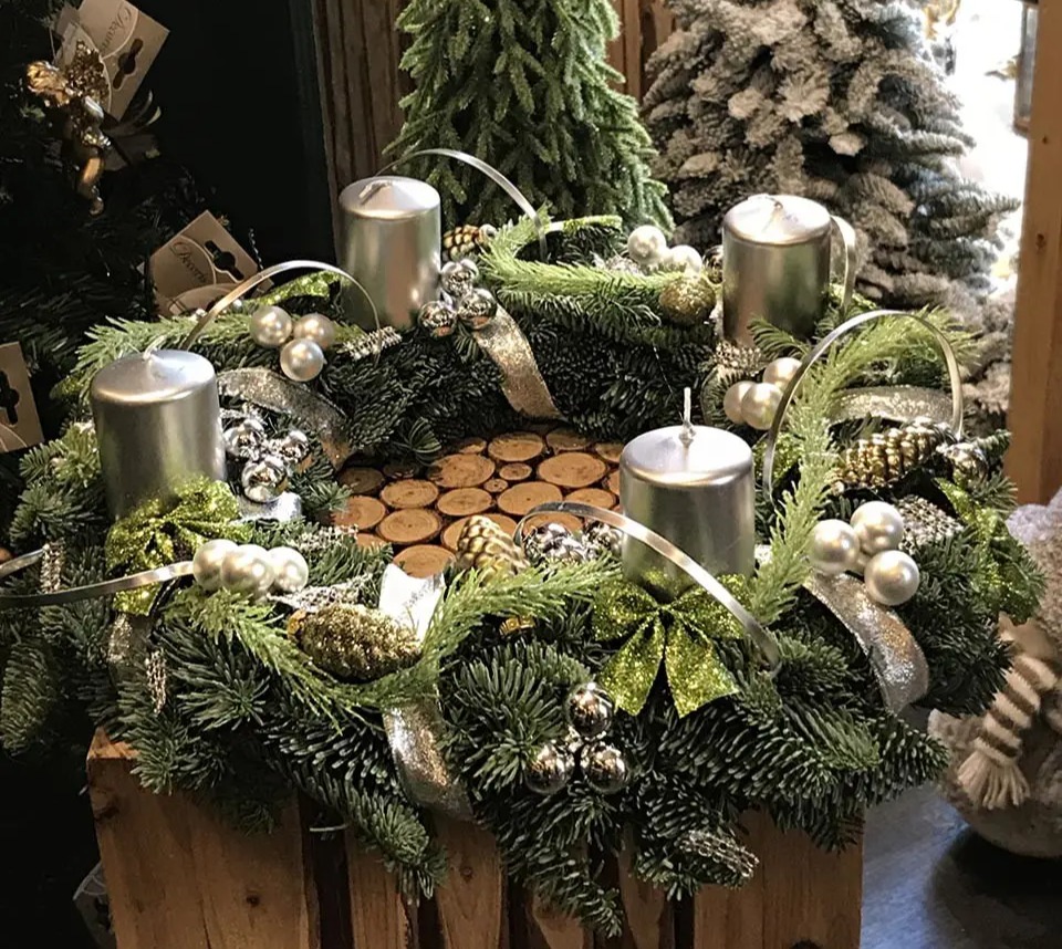 Une couronne de Noël argentée