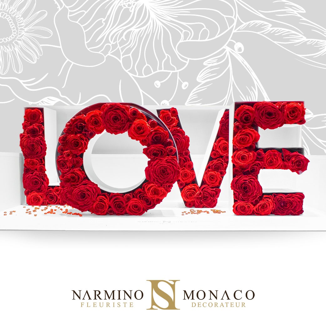 Un nouvel article fait son apparition sur ce site : le mot LOVE composé de roses rouges fraiches ou stabilisées dans des boites en forme des lettres qui composent le mot. Une réalisation parfaite et distinguée par Narmino. Tant le choix des roses que celui concernant les boites (qui sont réalisées sur mesure pour ce fleuriste de renom), tout ici respire la pureté et la qualité. Quoi de mieux pour témoigner de votre passion à l’être aimé ?